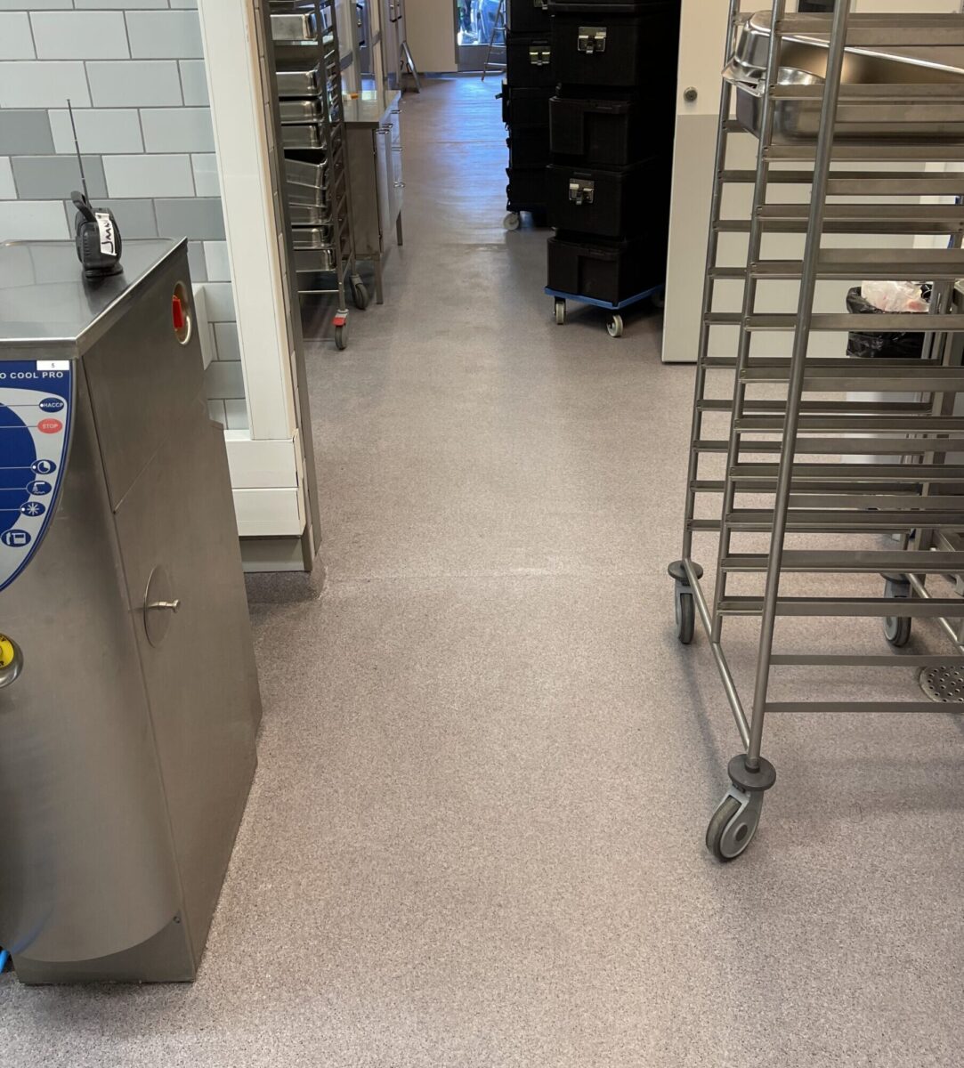 Salpakankaan koulun keittiöön tehtiin kesällä 2022 huoltoa ja samalla keittiön 301m² lattia uusittiin Solmaster AC 50 -akryylipinnoitteella.