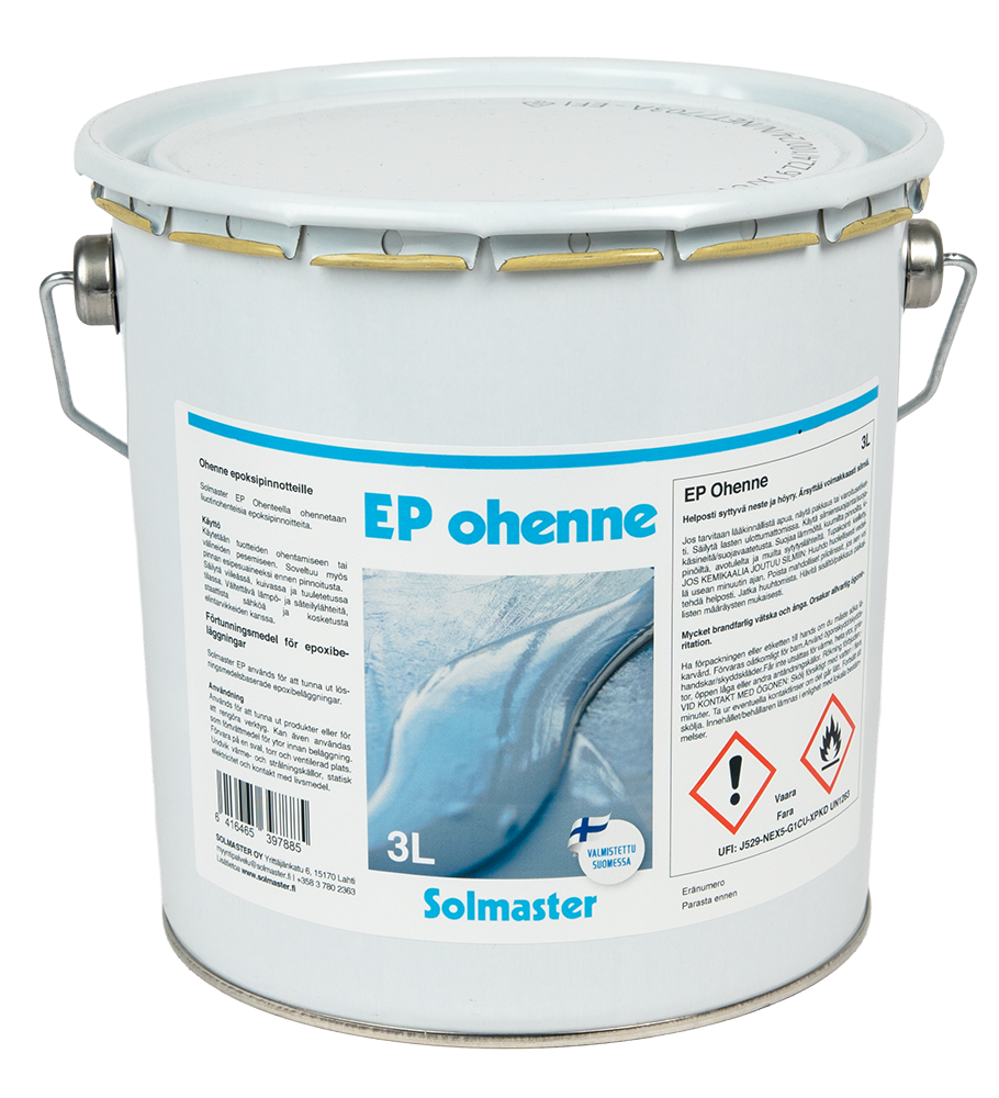 Solmaster EP Ohenne on liuotin ohenne, jolla ohennetaan liuotinohenteisia epoksipinnoitteita.